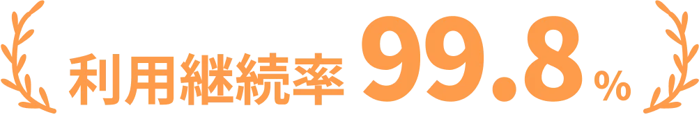 多くのお客様にご好評をいただき利用継続率99.8%です